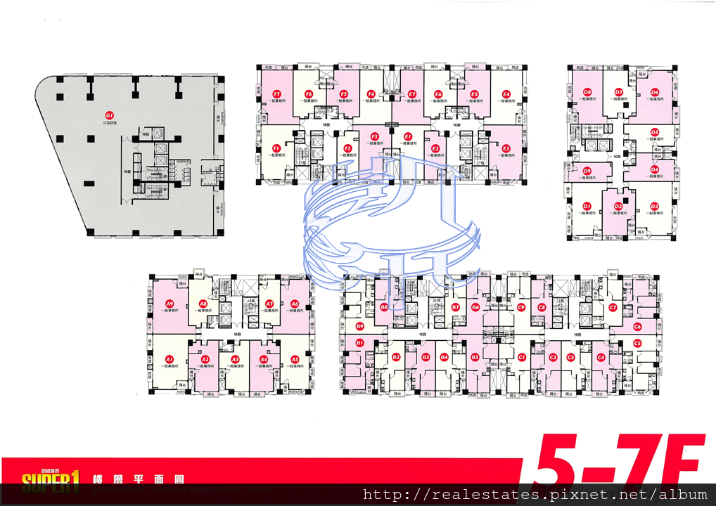 ABCD棟單層9戶(1房~3房) EF棟單層7戶(一般事務所) |