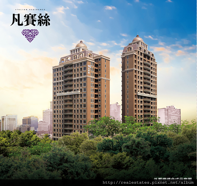『凡賽絲』基地為不規則型,僅規劃了2棟建物,面臨永安北路(莊敬國小)的是21樓B棟雙併82坪4房產品,面同德十二街的是19樓A棟4併65坪3+1房,兩棟建物中間卡了一棟7樓高的舊建物,外觀走新古典的設計,符合當地高價住宅客層的喜好,但是卻也無新意,且在週邊全部均為新古典的社區中,無法凸顯。