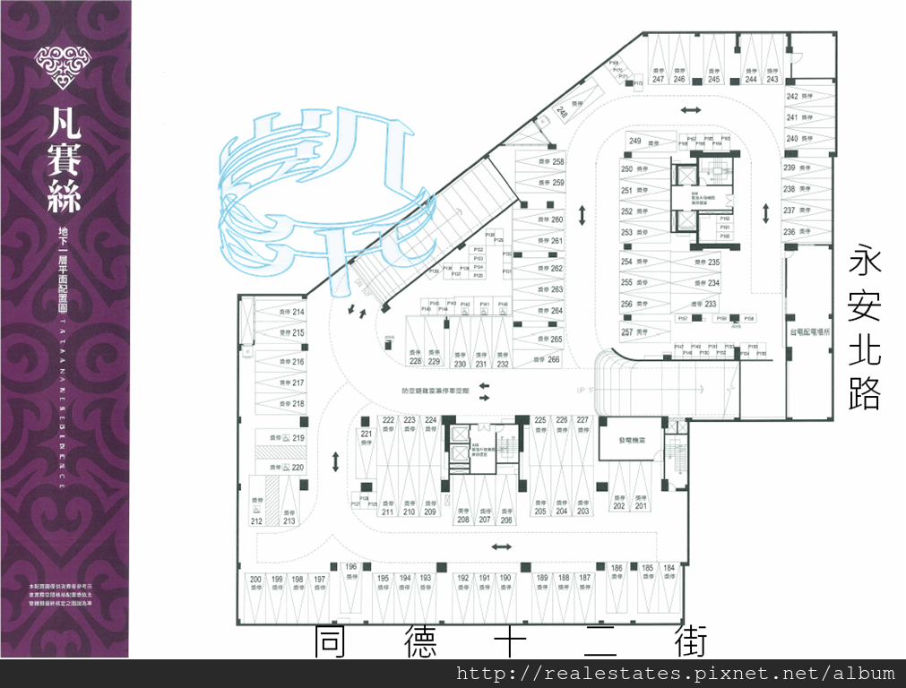 『凡賽絲』地下1層平面圖,車道出入口規劃在B棟,由永安北路進出。